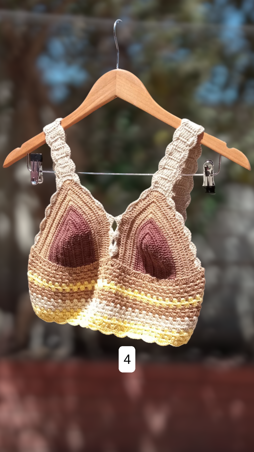 4: Crop top beige, cafe, amarillo suave, crema, Copa B.